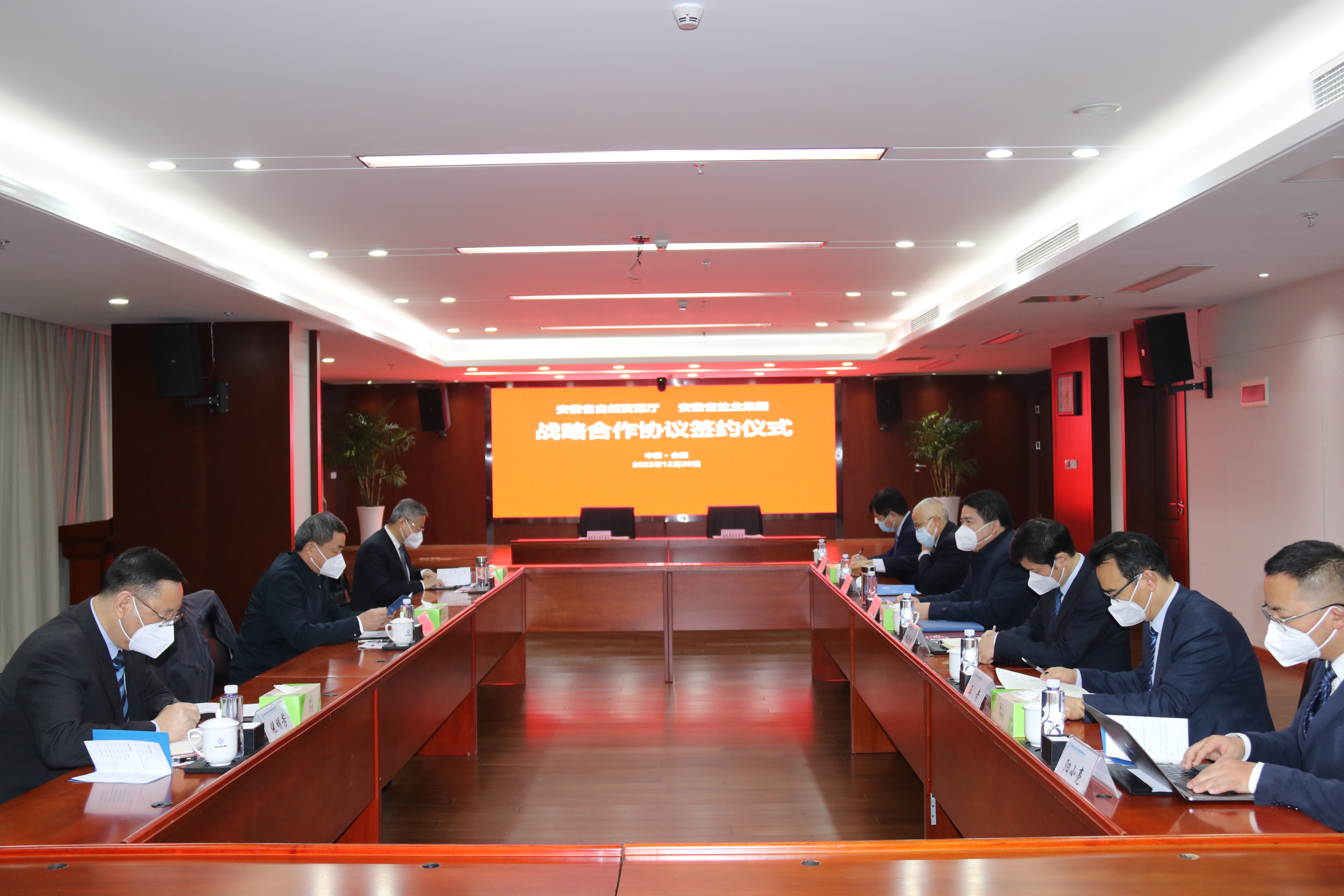 罗太忠对胡春武厅长一行莅临表示热烈欢迎。他表示,省生态环境产业集团的使命愿景、战略规划以及业务方向与省自然资源厅主责主业高度契合。前期,在厅党组的关心厚爱下,为集团输送了专业领域优秀人才,同时在业务对接方面也给予了有力支持,新成立的安徽省生态环境保护修复发展有限责任公司,将在国土勘测规划设计、国土整治、生态保护修复、产业园投资建设运营以及“双招双引”等方面搭建平台、培育产业、打造品牌、多做贡献,不辜负省自然资源厅的关心与厚爱。省生态环境产业集团有信心将与省自然资源厅的战略合作打造成政企合作的样板、全域土地综合整治、生态保护修复等业务领域合作的典范。