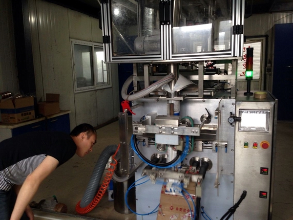 工作人员在检查包装机