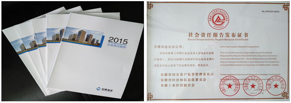 7月7日,在由安徽省国资委、经信委和工业经济联合会联合举办的安徽省企业社会责任报告发布会上,安徽盐业2015年社会责任报告正式对外发布。