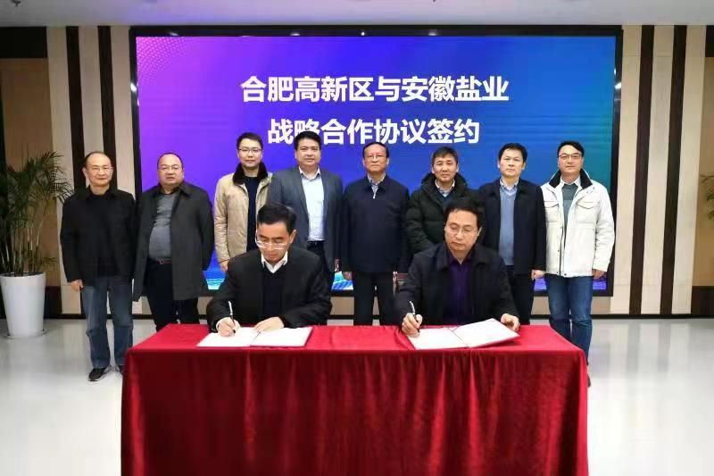 为加快省生态环境产业集团组建,推进集团产业发展,2021年12月31日下午,省盐业集团与合肥市高新区签署了战略合作协议。省国资委副主任、党委委员、一级巡视员叶传柏,省生态环境厅二级巡视员阮敏,省盐业集团党委书记、董事长罗太忠出席签约仪式。