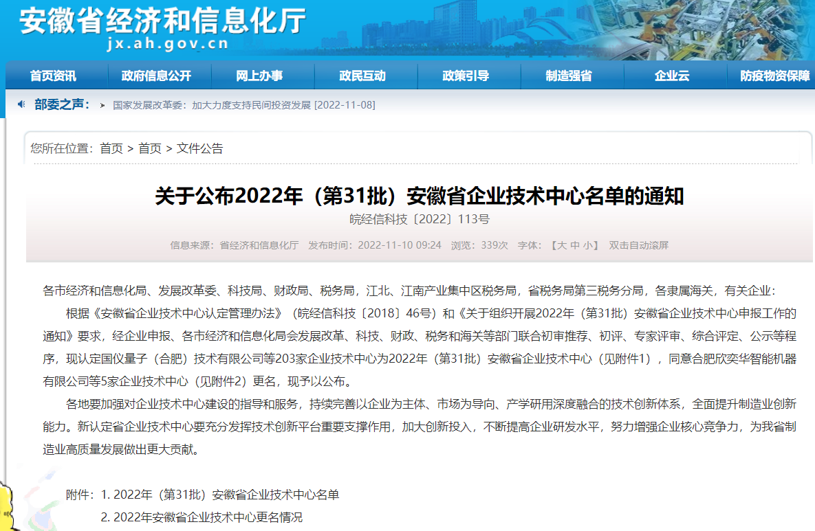 近日,安徽省经济和信息化厅公布了2022年安徽省企业技术中心(第31批)认定名单,安徽环境科技集团荣列其中,该荣誉的获得彰显了企业的综合竞争实力以及显著的技术创新能力。