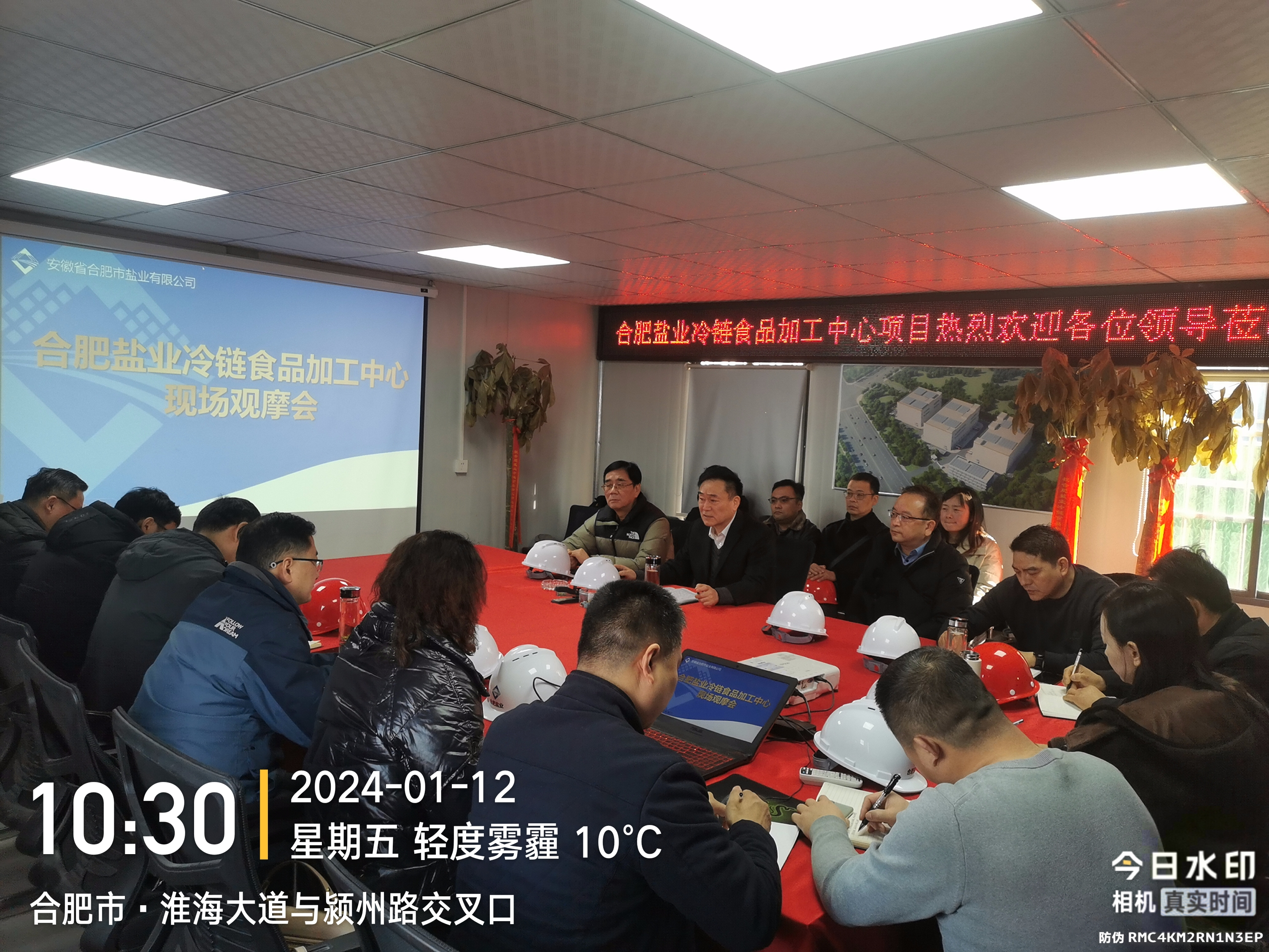 2024年1月12日上午,合肥盐业冷链食品加工中心现场观摩会暨安全生产调度会在新站区高新技术开发区项目建设基地召开,会议由合肥市盐业公司党委书记、董事长、经理张鹰主持,省盐业集团公司副总经理江南及运营部相关人员、合肥市盐业公司领导班子成员、本部中层管理人员及所属各县(市)公司领导班子成员参加。