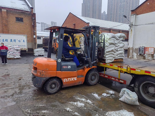 合肥盐业公司全体职工全员上岗,开展融雪盐配送工作。