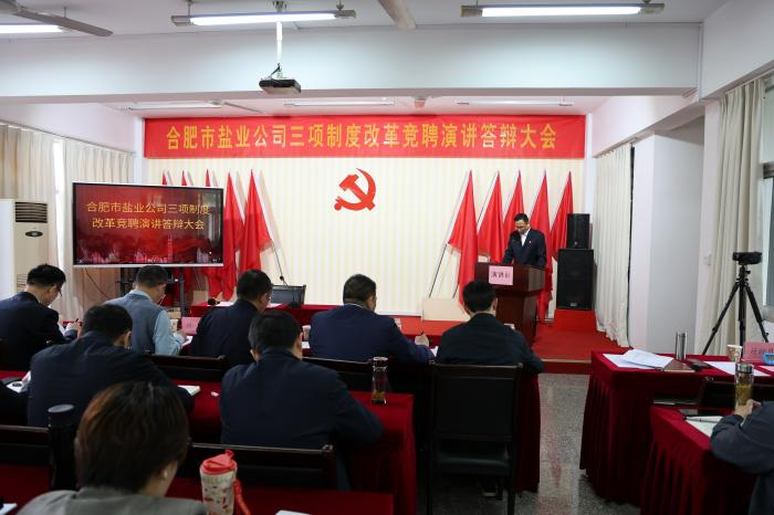 4月17日,合肥市盐业公司中层管理岗位竞聘演讲答辩大会在公司四楼会议室举行。盐业集团纪委、专家评委、公司领导班子、所属各县(市)公司主要负责人,本部全体在岗职工共70余人参加了会议。